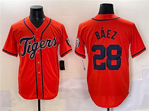 Detroit Tigers #28 Javier Báez Orange With Patch Cool Base Stitched Baseball Jersey