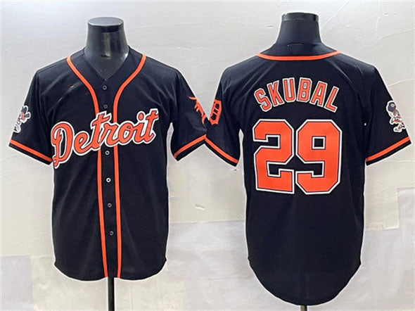 Detroit Tigers #29 Tarik Skubal Black With Patch Cool Base Stitched Baseball Jersey