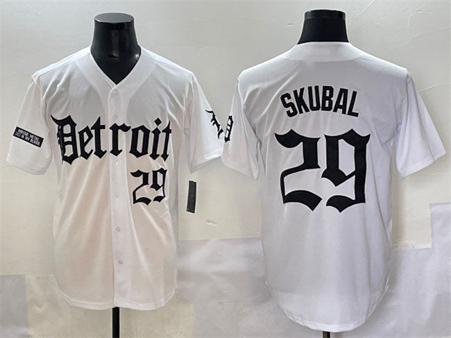 Detroit Tigers #29 Tarik Skubal White 'Motor Gothic Edition' Vapor Premier Limited Stitched Baseball Jersey