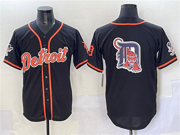 Detroit Tigers Team Big Logo Black With Patch Cool Base Stitched Baseball Jersey