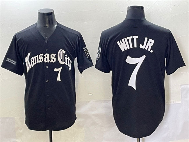 Kansas City Royals #7 Bobby Witt Jr. Black 'Gothic Crown Edition' Vapor Premier Limited Stitched Baseball Jersey
