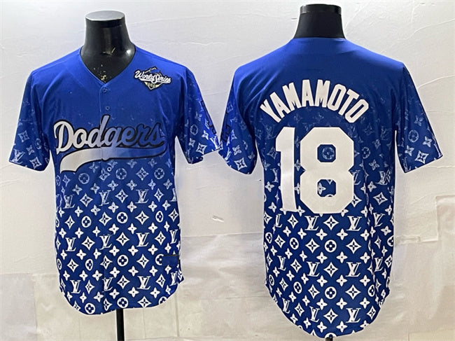 Los Angeles Dodgers #18 Yoshinobu Yamamoto Blue 2025 World Series Patch Limited Stitched Baseball Jersey