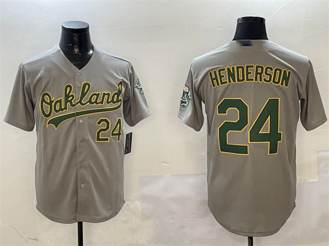 Oakland Athletics #24 Ricky Henderson Gray With Patch Stitched Baseball Jersey